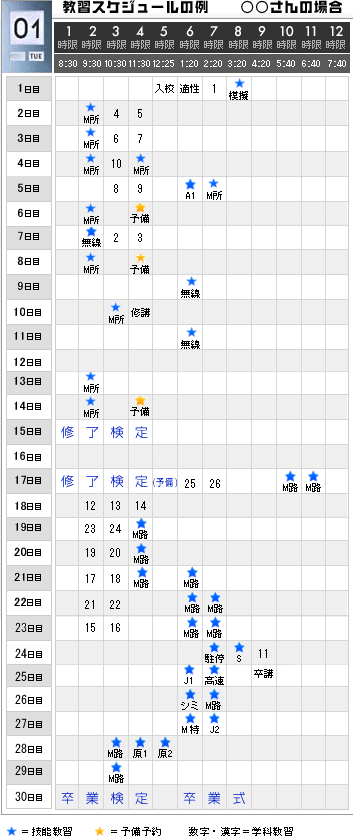 目標30日間で計画的に教習を進めます。